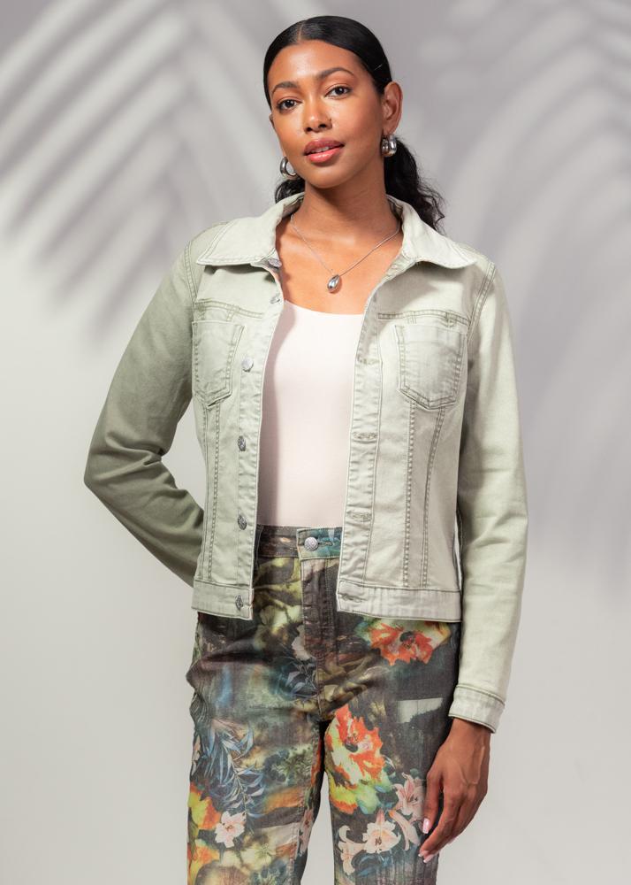 Reversible Denim Jacket – Botanical Print & Solid Sage Green