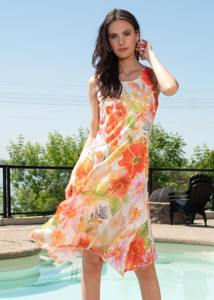 Alison Sheri Sleeveless Tropical Print A-Line Dress