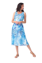 Shades of Blue Leaves Sleeveless, Bra Friendly Dress...Lined