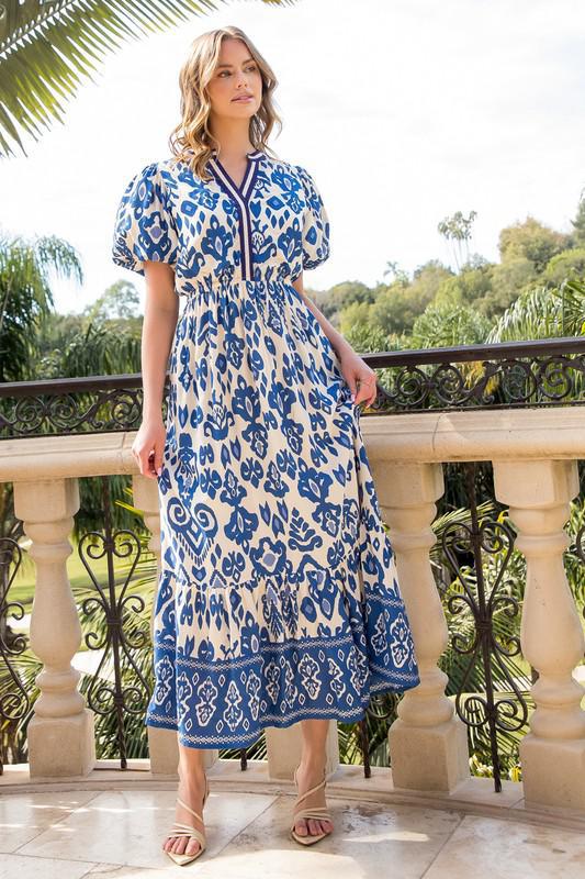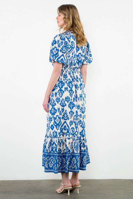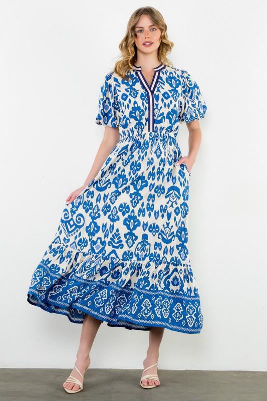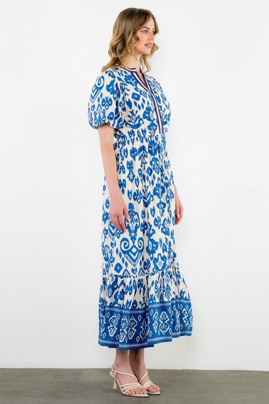 Blue & White Geometric Maxi Dress