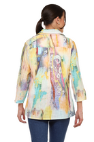 Discover artistic flair with this statement piece, a vibrant and lightweight women's blouse that embodies expressive style and unique design. This eye-catching garment features a stunning abstract print, rendered in a kaleidoscope of colors that are sure to add a pop to any outfit.