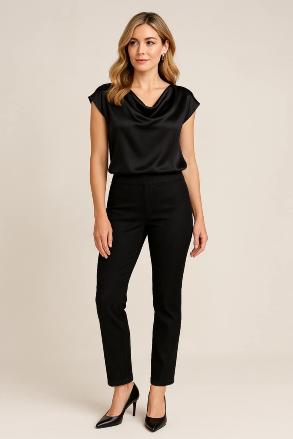 Women's Black Drawstring Jogger Pants with Satin Stripe