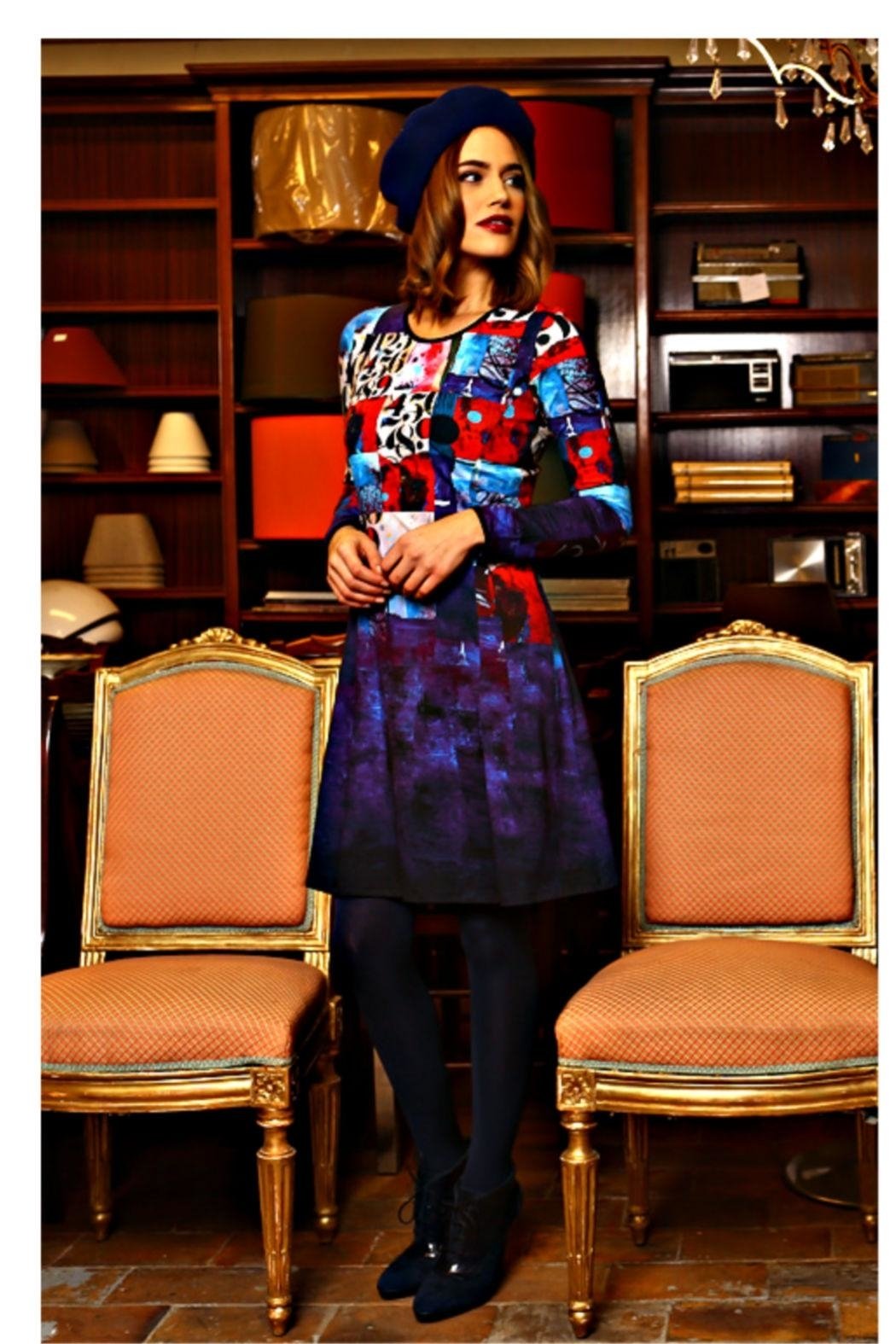 Dress Inspired by Carole Bressan's Billet Doux Painting, A simple dress, with a nice pattern that starts in gradient...Velvet Piped Sleeves and Neckline Composition FABRIC 1: 43% COTTON 14% ELASTANE 43% MODAL 38(6/8) 40(8/10) 42(10/12) 44(10/12)