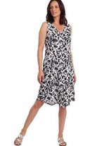 Black White Swirl Linen Blend Dress...Zipper Accent Pockets...Bra Friendly Straps
