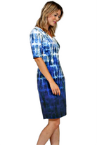 V-Neck Cotton Stretch Shift Dress in Blue Glass Print