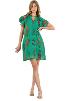 Embrace the essence of summer with this vibrant green floral dress, perfect for your everyday wardrobe or a special outing. Crafted from a lightweight fabric, this dress offers unparalleled comfort and ease of movement. The colorful floral print exudes playful charm, adding a cheerful touch to your look. Key Features: - Eye-catching green color with a vibrant, multi-colored floral print - Made from soft, breathable lightweight fabric for ultimate comfort - Flattering V-neckline with delicate button detailing - Elegant flutter sleeves for a touch of femininity and style - Loose, flowy silhouette for a relaxed fit suitable for various body types - Ideal for casual wear, day trips, or laid-back summer parties Design Details: - The dress features a graceful A-line cut, providing a flattering fit for all figures - The flutter sleeves add volume and a playful element to the design - The button-up V-neckline enhances the overall sophistication of the dress Step out in style and confidence with this versatile green floral dress, a must-have addition to every woman's wardrobe