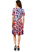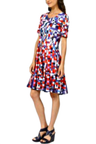 Multi-Color Squares Knit Dress with Scoop Neckline and Short Sleeves