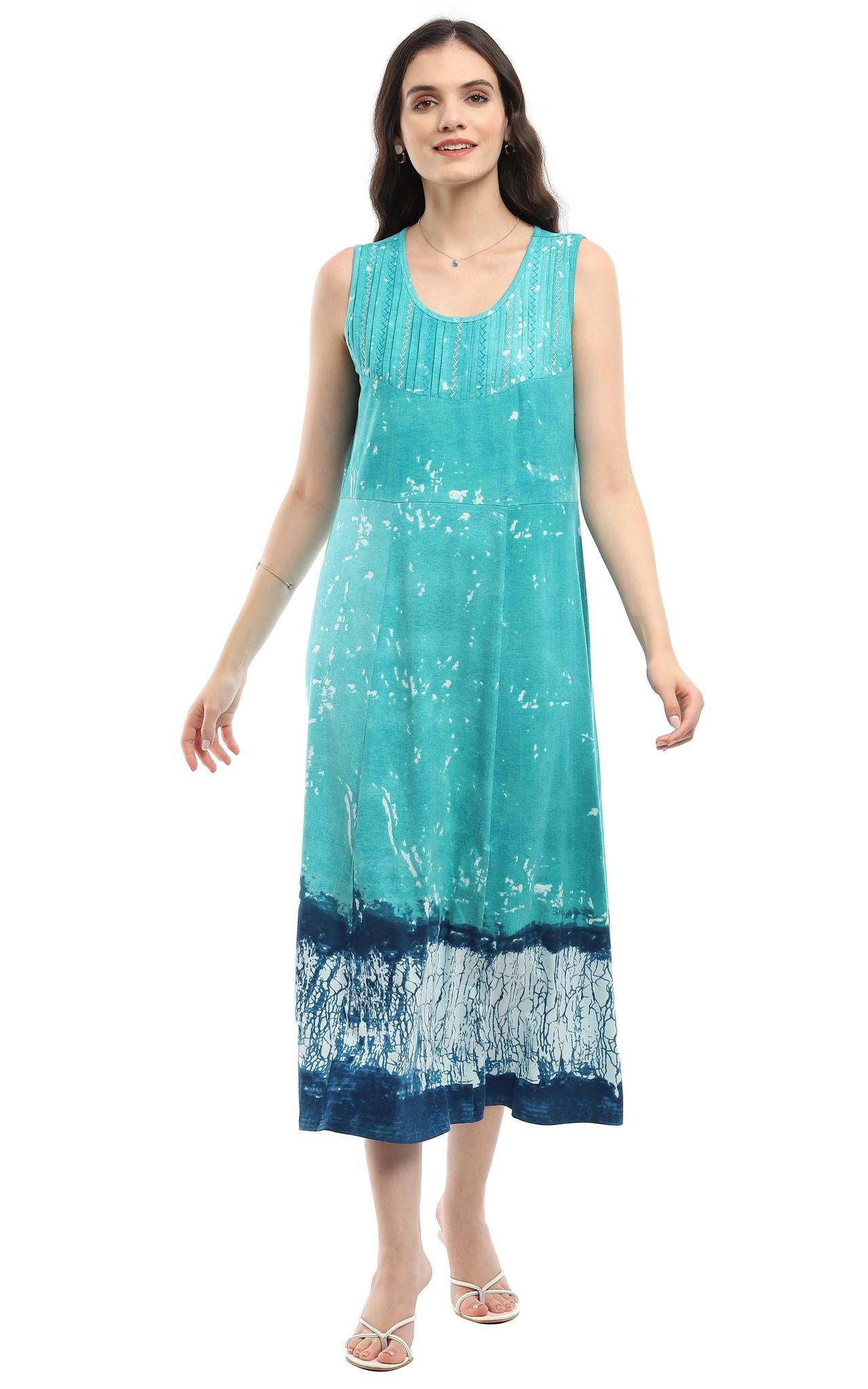 Parsley & Sage Teal Tie-Dye Gathered Hem Dress – Flowy, Sleeveless & Versatile. Elevate your casual-chic style with this effortlessly elegant Parsley & Sage Teal Tie-Dye Gathered Hem Dress. Crafted from lightweight, knit fabric, this sleeveless beauty is perfect for resort getaways, weekend outings, or everyday wear. The flattering A-line silhouette features a scoop neckline with delicate embroidered detailing on the bodice, offering a handcrafted bohemian touch. A dreamy teal-to-navy ombré tie-dye pattern flows into a unique gathered hem, adding movement and flair to every step. Wear it straight down for a breezy, relaxed fit or belt it for a more tailored look—this versatile piece styles up or down with ease.