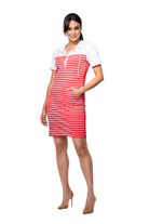 Red and White Sporty Striped Knit Dress with Hood and Kangaroo Pocket