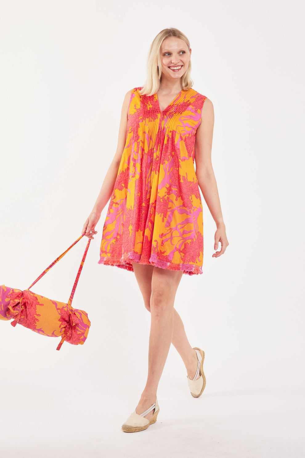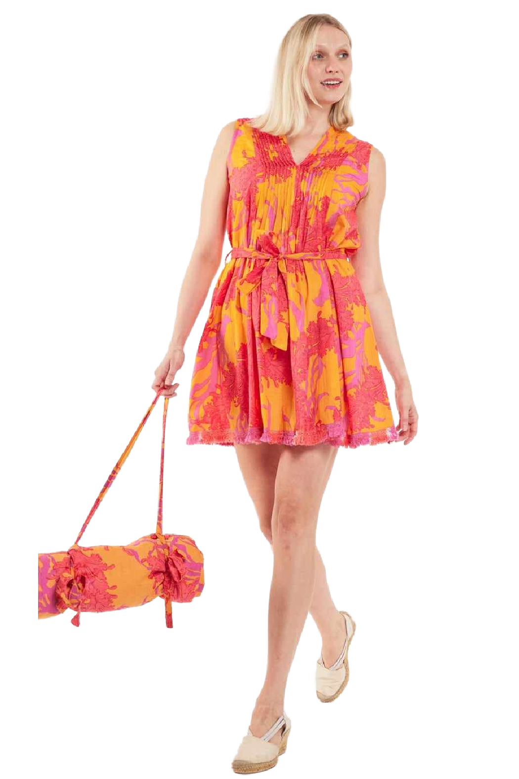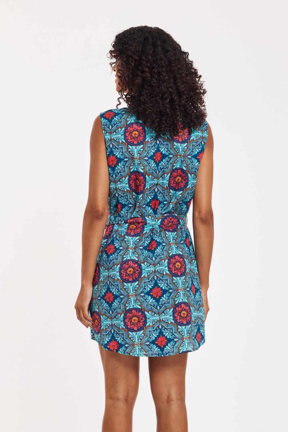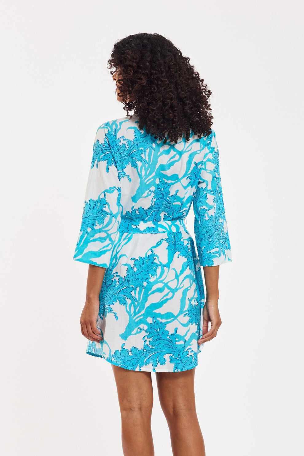 Turquoise Coral Print Cotton Shirt Dress by Moda Posa
