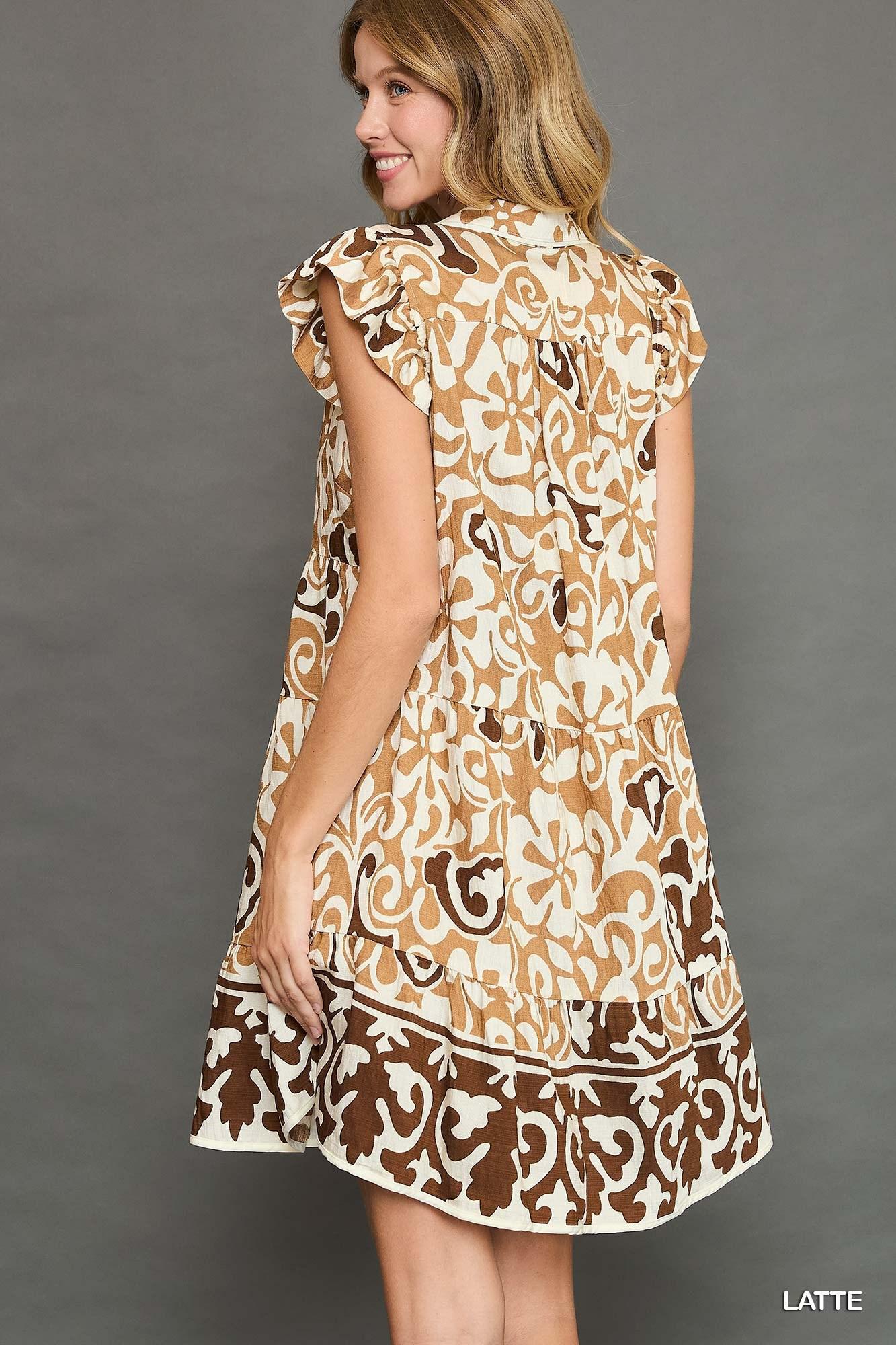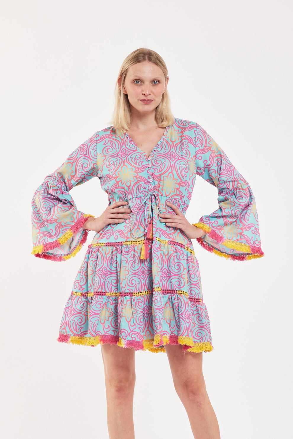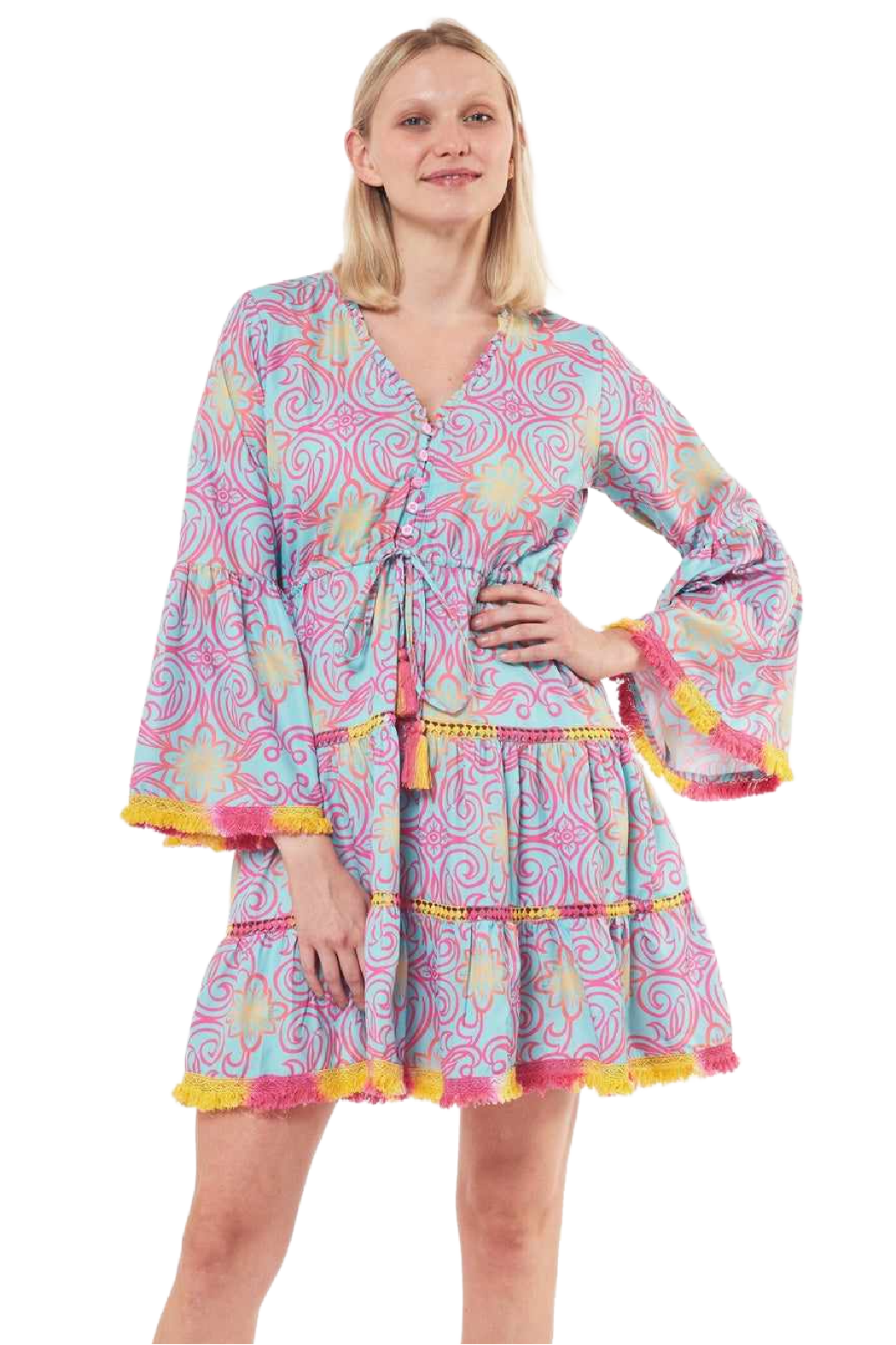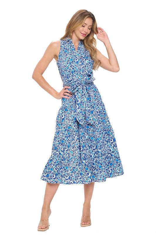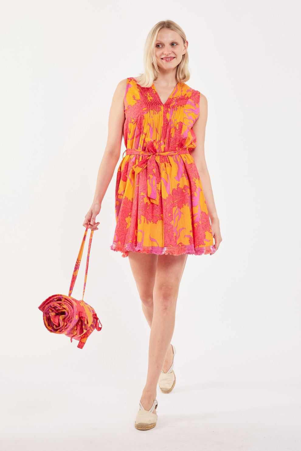 Turquoise Coral Print Cotton Shirt Dress by Moda Posa