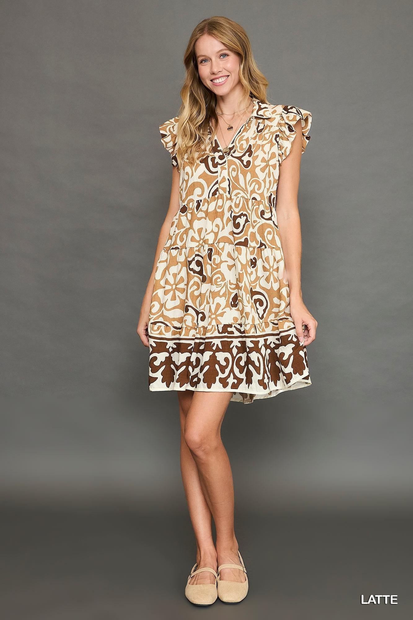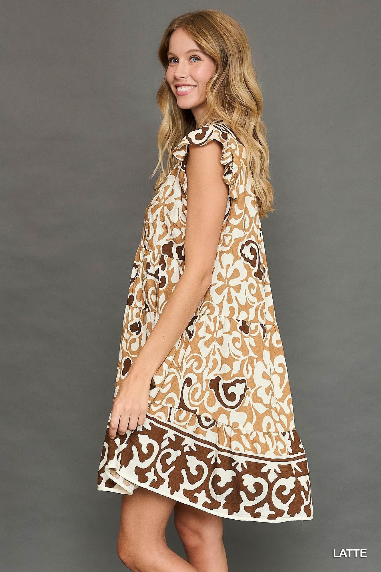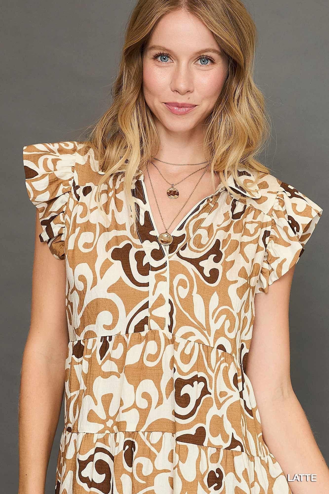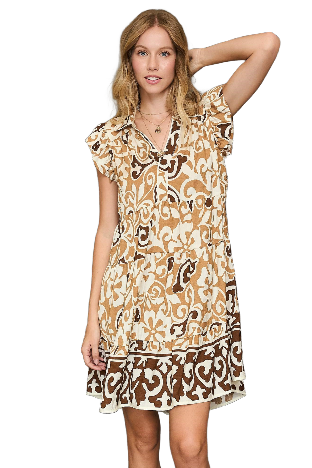 Turquoise Coral Print Cotton Shirt Dress by Moda Posa