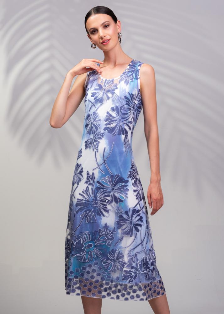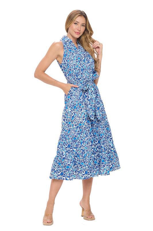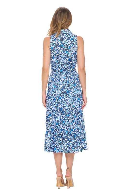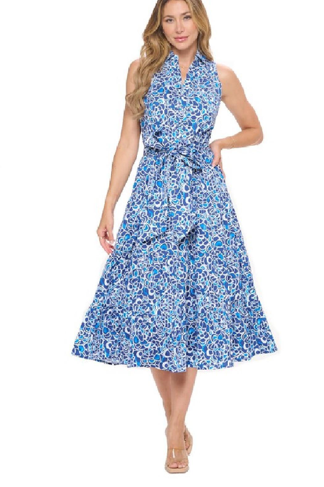 Baroque Blue Red Swirl Alcee Maxi Dress