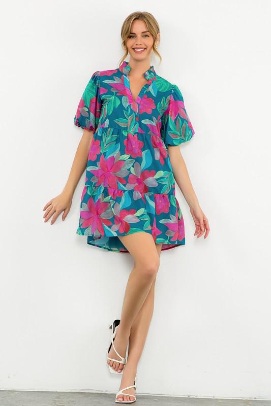 Teal Flower Print Dress