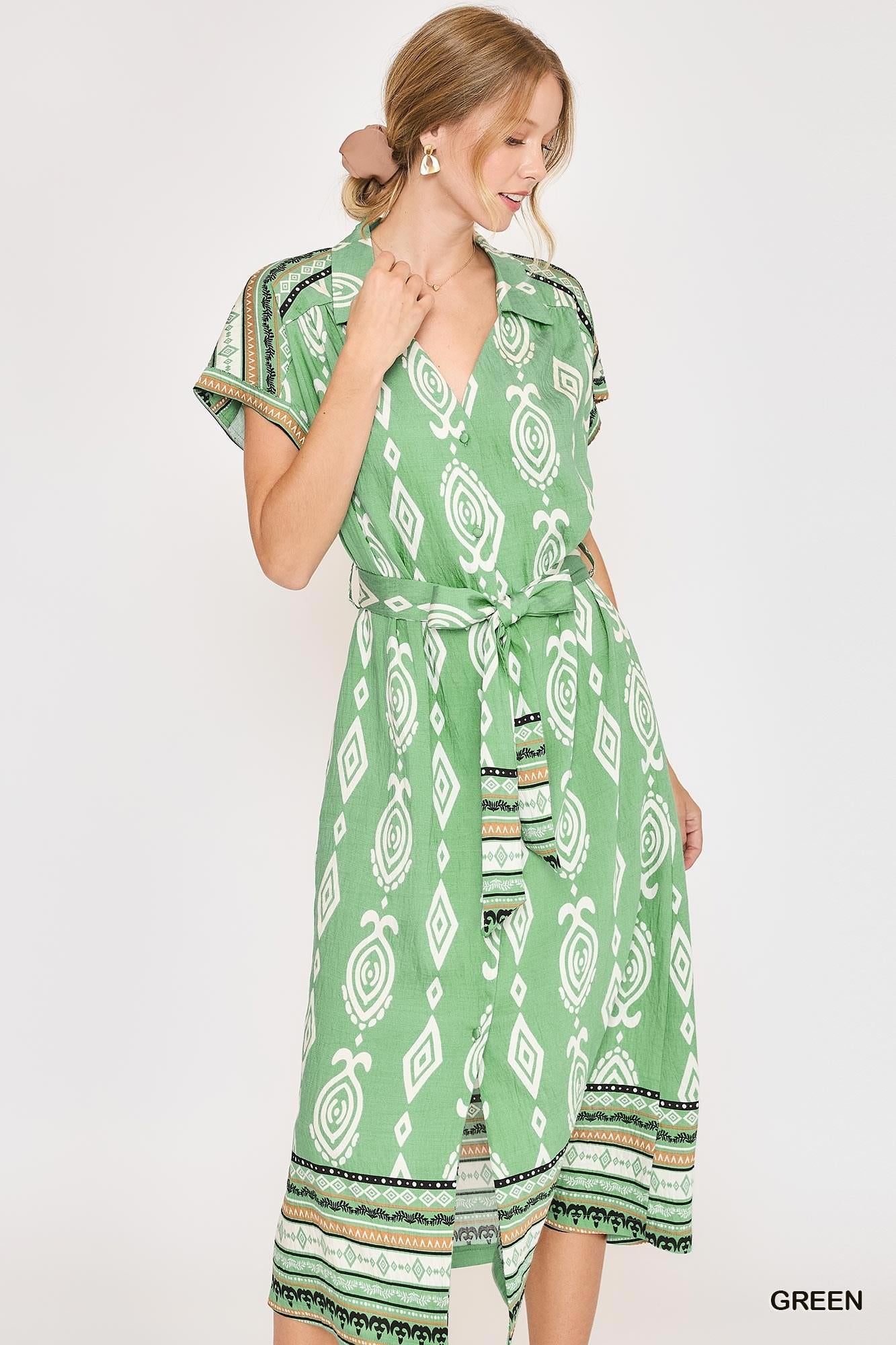 Green Tribal Shirt Dress