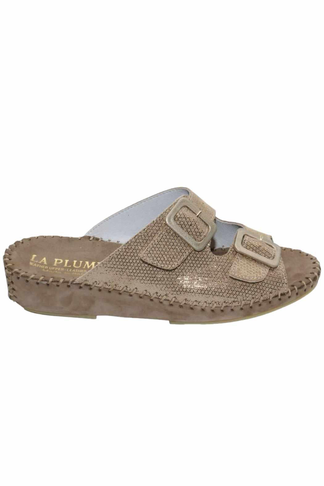 Indulge in the timeless elegance of the La Plume Jen, handcrafted in Italy from the finest leather and suede for superior quality and comfort. This elegant open-toe slide sandal boasts a striking classic beauty with a unique pattern and color, adding a touch of sophistication to any outfit!