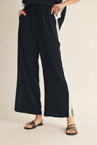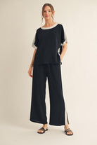 Jodifl set, silky lounge set, poly blend matching set, wide leg pant set, black two piece outfit, resort chic lounge wear, women’s boutique sets, travel outfit women, elevated casual set, Petunias of Naples, Boutique in Naples, Naples Boutique, Boutique Naples Florida, Naples Florida Boutique