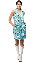 Blue and Green Leaf print Zip Accent Dress with Side Pockets!