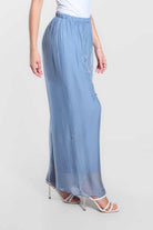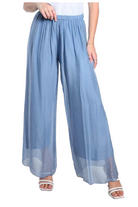 The Only Way to Describe the Roxy Silk Palazzo Pant is "Effortlessly Chic" The Flowy, Straight Leg Palazzo Pants are so Comfy, You Will Never Want to Take Them Off. They Are Flawless Paired with a Tank or a Tee and a Fabulous Strappy Sandal to Dress to Impress! Made in Italy