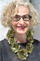 Jianhui London Plumeria Flower Necklace made from recycled plastic water bottles, Upcycled plastic bottles Hand-cut & hand-woven on leatherette Hand- painted and hand gilded
