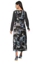 Parsley & Sage designed This stylish and comfortable women's long dress which seamlessly blends fashion with functionality. Featuring a contemporary abstract print in shades of black, blue, and gray, this dress makes a bold statement while maintaining an elegant appeal. The soft, breathable fabric ensures all-day comfort, perfect for both casual and semi-formal occasions. Designed with a flattering scoop neckline and full-length sleeves, the dress offers a sophisticated yet relaxed silhouette. The A-line cut creates a flowing drape that enhances comfort and ease of movement. Practical side pockets add a touch of convenience, making it easy to carry small essentials. With its unique artistic pattern and versatile design, this dress pairs effortlessly with heels, flats, or boots, making it a must-have addition to any wardrobe. Ideal for day-to-night wear, it is perfect for outings, work, or leisure. Elevate your style with this chic and trendy long dress.