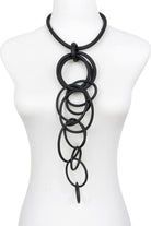 Keywords: rubber necklace with magnetic clasp, black statement necklace, cascading ring necklace, chunky rubber jewelry, bold modern accessories, urban chic jewelry, lightweight statement necklace, Boutique in Naples, Naples Boutique, Naples Florida Boutique, Boutique Naples Florida
