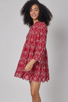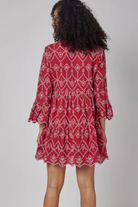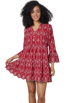 The Red Eyelet 100% Cotton Stunning Cadenza Dress is a Must Have! This Stylish and Feminine Dress in a Red With White Eyelet. Crafted from a High Quality 100% Cotton Fabric this Dress Offers Both Style and Comfort. The Tiered Skirt and Ruffle Flounce 3/4 Sleeves Add a Plauyful and Trendy Touch. Designed to be Versatile, Thi Red Eyelet Dress can Be Styled For Many Occasions. Whether for a Casual Day Out or a Special Event, This Dress is Perfect. Pair it with Flats or Cowboy Boots and a Denim Jacket for a Chic Relaxed Look or Dress it Up with Heels for a Dressier Look. Perfect Dress for Holiday Time! This Red Dress is Not Only Fashionable but Practical.The 100% Cotton Lined Fabric Offers Breathability and Comfort.