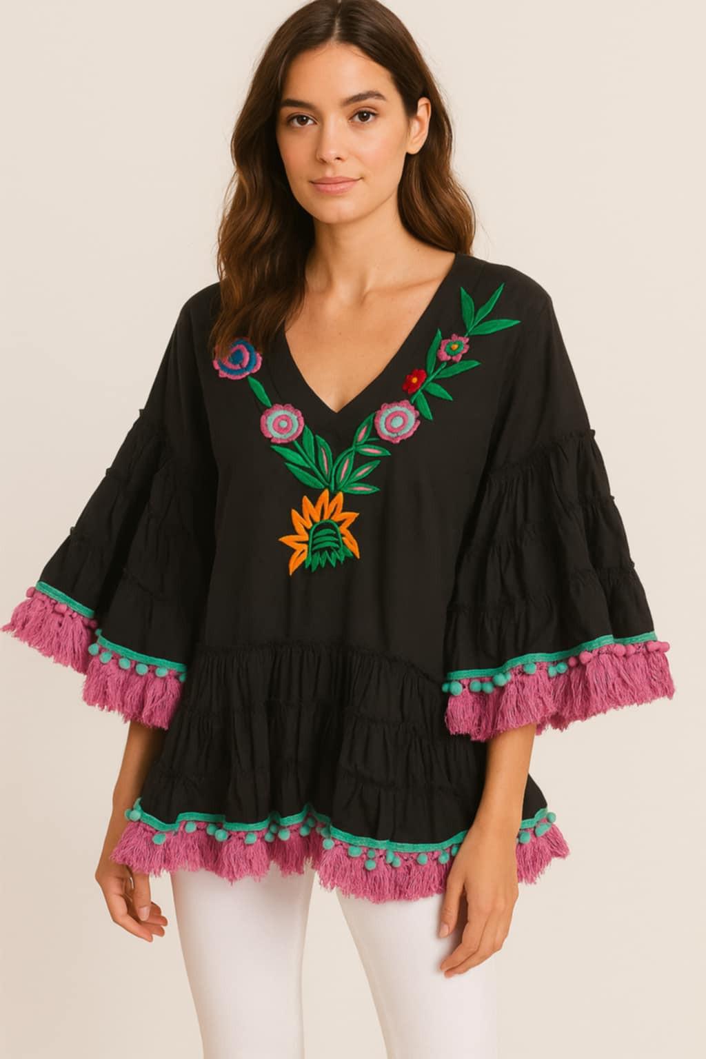 Boho Embroidered Cotton Black Blouse