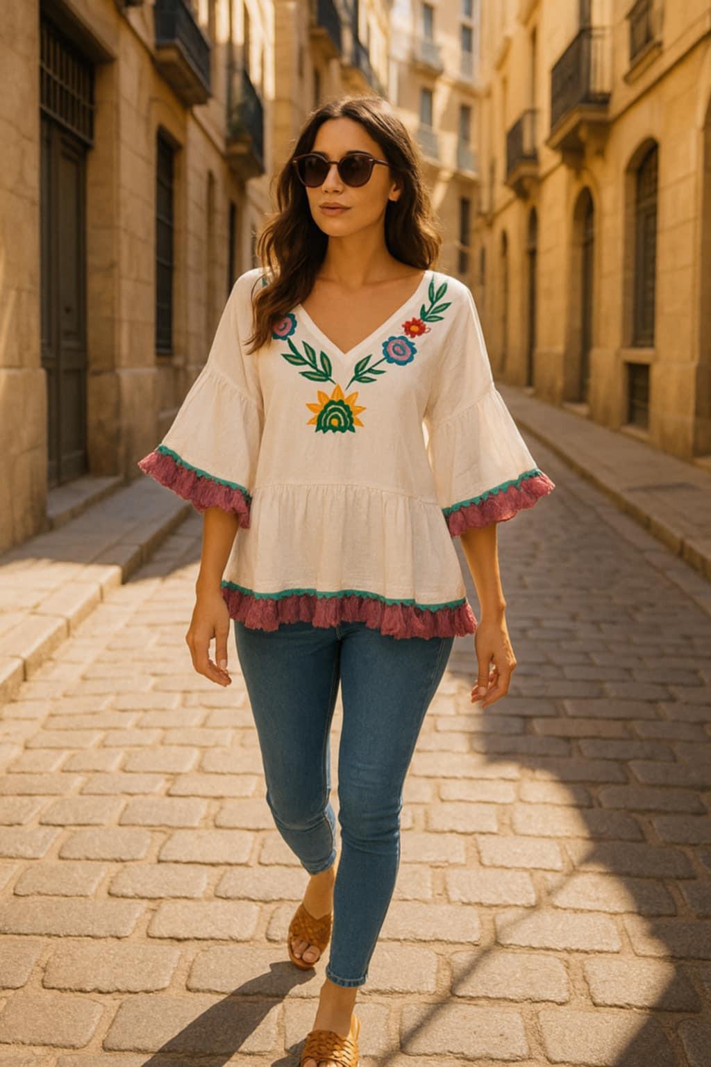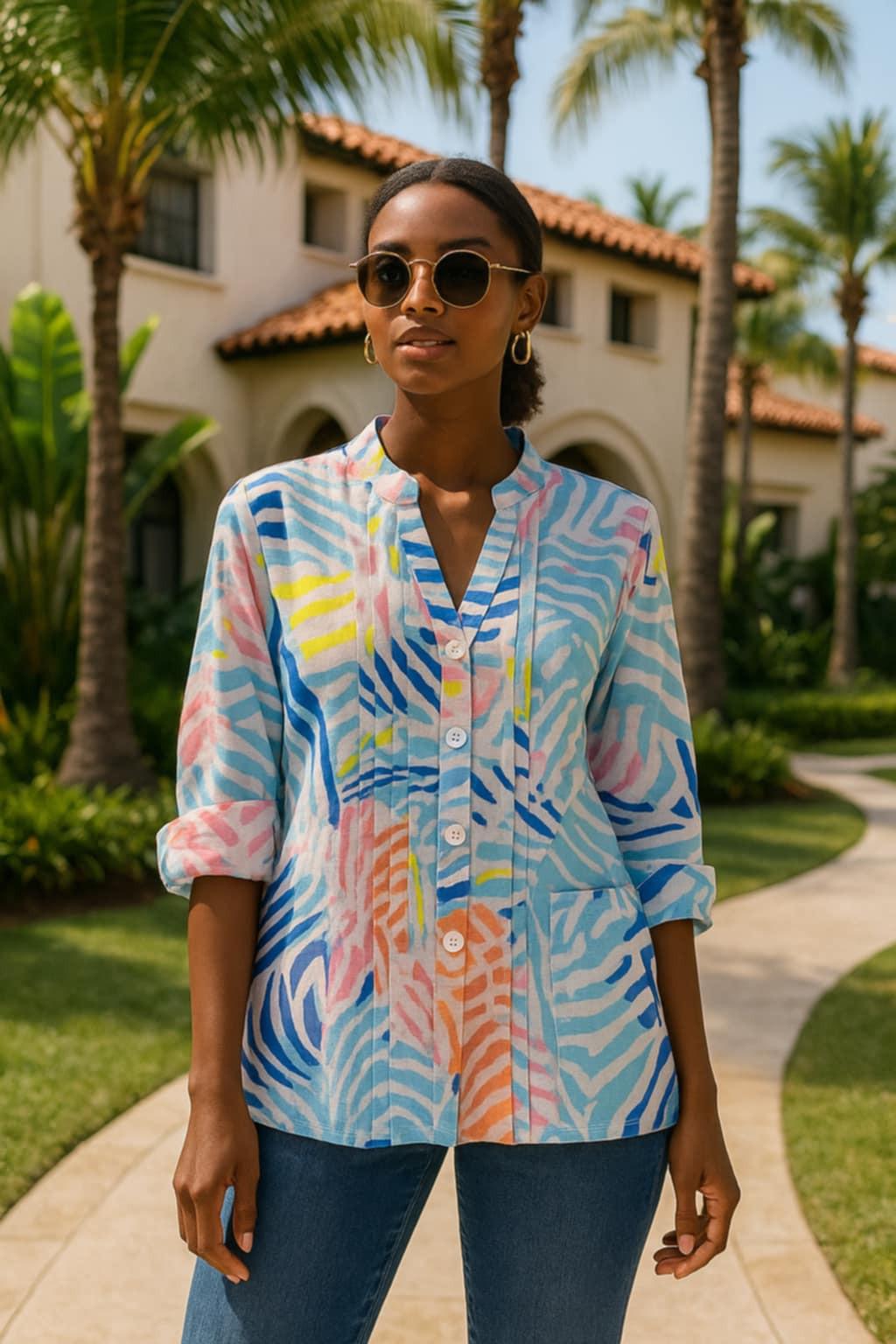Burnout Graphic Tee with Botanical Print – Lightweight Resort Chic