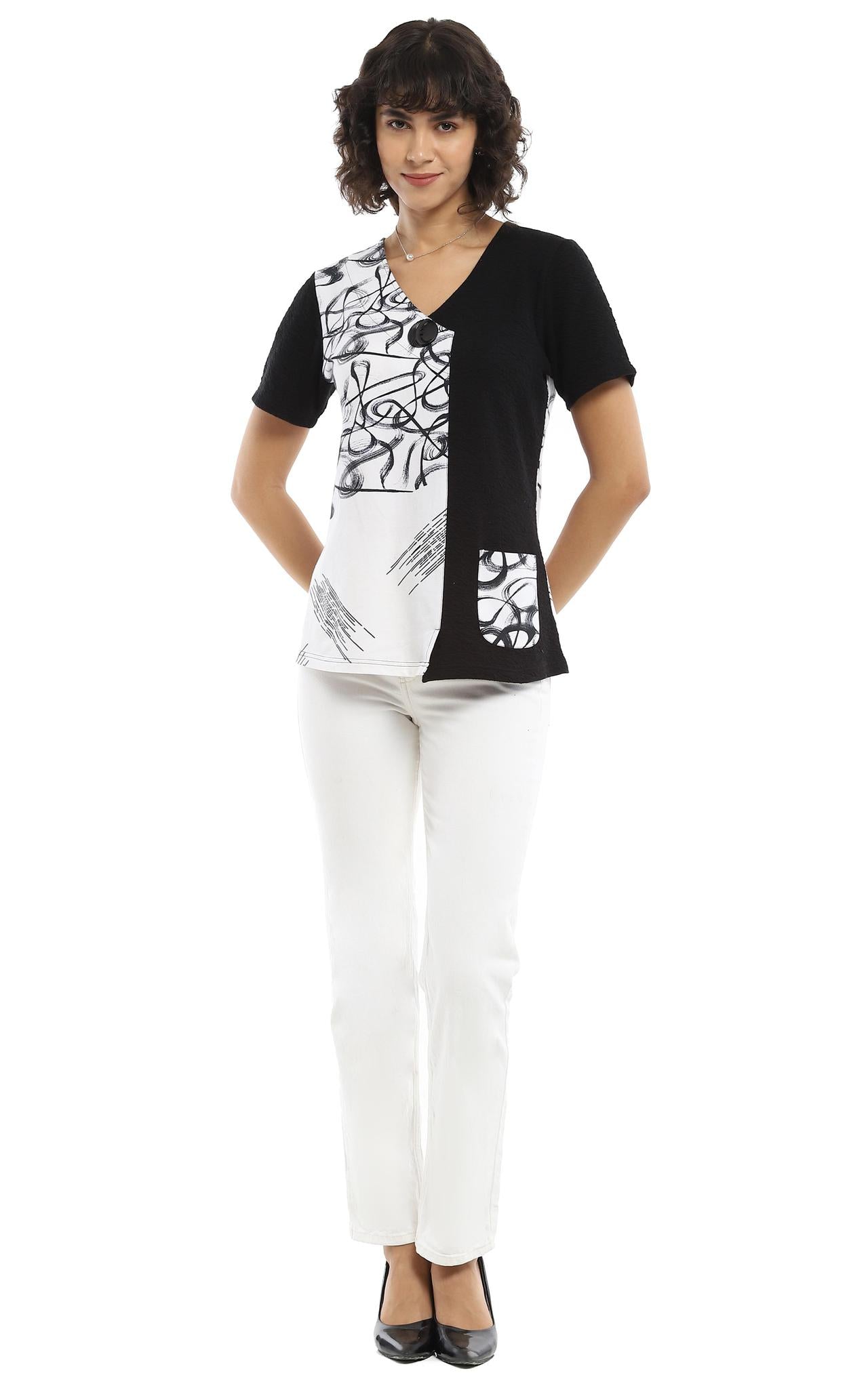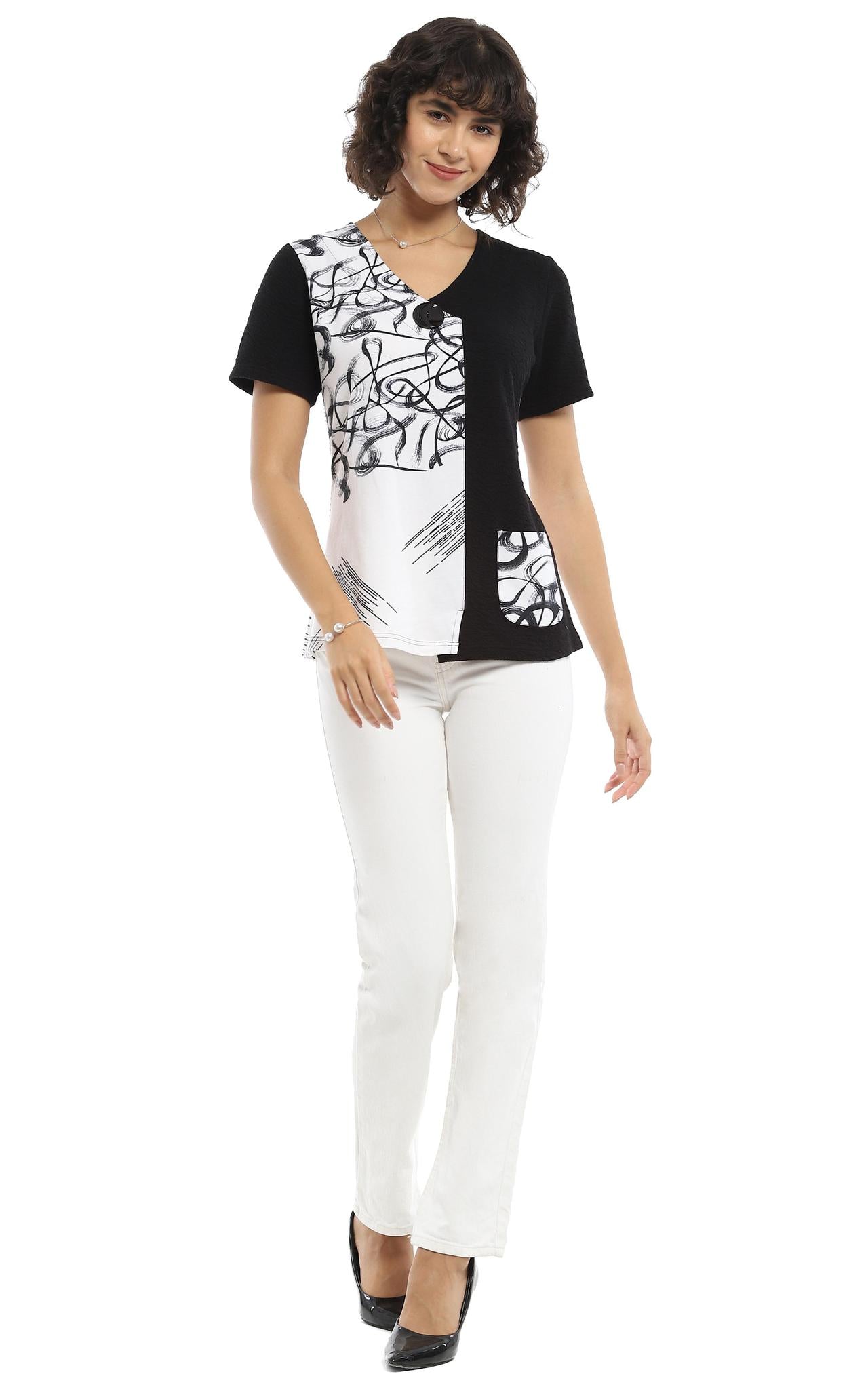 Parsley & Sage Black & White Asymmetrical Knit Top
