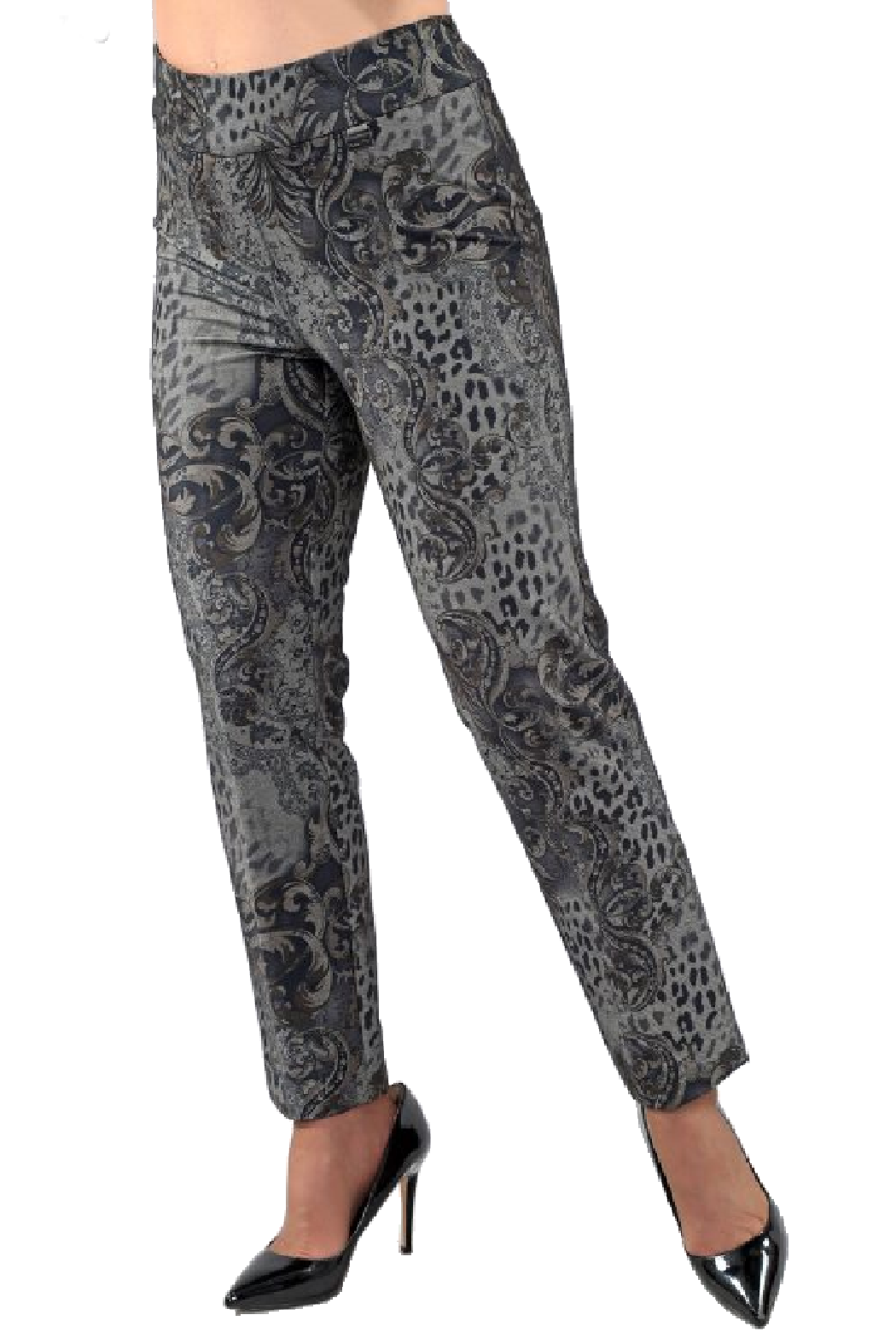 Discover the perfect blend of comfort and style with these exquisite grey patterned pants. Designed to elevate your wardrobe, these pants are tailored to fit seamlessly and flatter your silhouette. Key Features: 1. *Luxurious Pattern*: Adorned with an intricate combination of paisley and leopard print, these pants add a sophisticated and fashionable edge to your outfit. 2. *Premium Fabric*: Crafted from high-quality materials, ensure a soft touch against the skin, providing all-day comfort while maintaining durability. 3. *Body-Hugging Fit*: Features a tailored, slim fit that enhances your natural shape, offering both style and elegance, ideal for both casual and formal occasions. Fabulous Tummy Control Panel 4. *Versatile Design*: A versatile addition to your wardrobe, perfect for pairing with blouses, shirts, or sweaters. Dress them up with heels for a night out or down with flats for a chic day look. 5. *Easy Care*: Machine washable, promising a hassle-free cleaning process without compromising the quality and longevity of the fabric. These grey patterned pants are the ultimate piece for the modern, fashion-forward individual. Embrace a look that is both timeless and contemporary with this standout design.