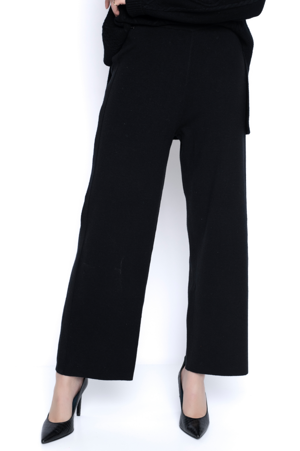 Check Out Our Pull-On Wide Leg, Black Pants Made of a Soft Sweater Knit Fabric Designed for Both Comfort and Style. These Black Wide Leg Pants are a Versatile Addition to Your Warbrobe, Offering a Modern and Sophisticated Look. Our Soft Sweater Knit Pants Provide a Luxurious Feel Against Your Skin. The Wide Leg Silhouette Gives a Flattering and ElongatingEffect, Making it Suitable For All Body Types. These Versatile Pants Can be Dressed Up or Down for Any Occasion. Pair with a Blouse and Heels For A Chic Lookor Opt For a Cozy Sweater and Sneakers for a More Casual Look. We Reccomend Our Black Crew Neck, Black Sleeveless Turtleneck or Black & White Poncho to Pair With Them. The Timeless Black Color Ensures Easy Coordination With Ypur Existing Wardrobe. Invest in These Wide Leg Black Pants to Elevate Your Style Game!