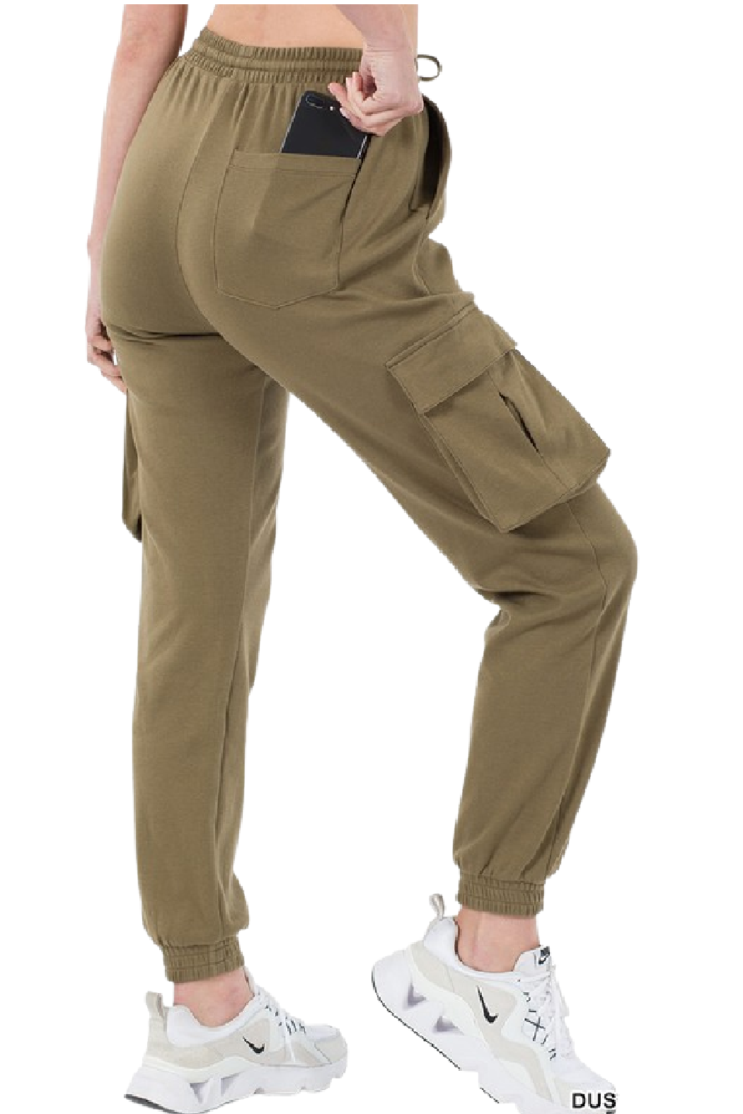 Kakhi Green COTTON DRAWSTRING CARGO JOGGER PANTS - 100% COTTON - FRONT & BACK POCKETS - SIDE CARGO POCKETS - ELASTIC WAIST & CUFFS TOTAL WAIST: 25", INSEAM: 29" approx. - MEASURED FROM SMALL * CHARCOAL FABRIC CONTENT: 60% COTTON 40% POLYESTER ** COLOR MAY VARY SLIGHTLY DUE TO MONITOR RESOLUTION