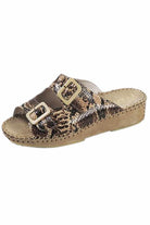 Indulge in the timeless elegance of the La Plume Jen, handcrafted in Italy from the finest leather and suede for superior quality and comfort. This elegant open-toe slide sandal boasts a striking classic beauty with a unique pattern and color, adding a touch of sophistication to any outfit!