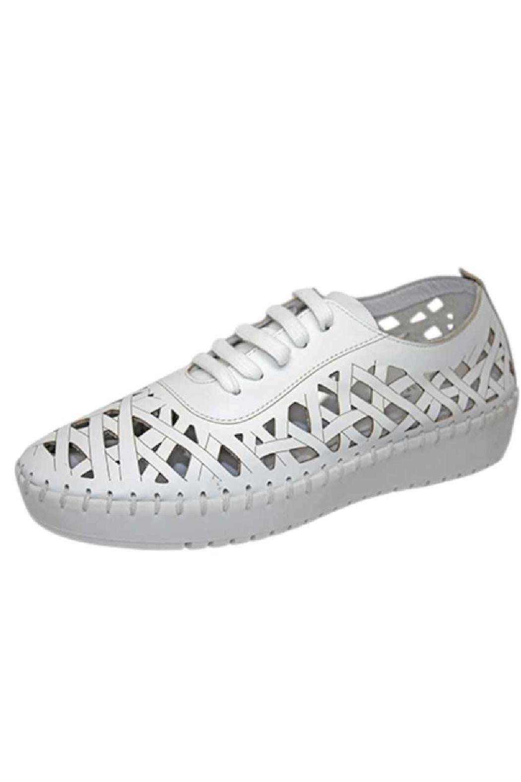 Introducing our chic and breathable white leather sneakers, perfect for everyday wear. These shoes feature a unique lattice-design that not only adds a stylish flair but also ensures excellent ventilation, keeping your feet cool and comfortable. Constructed with high-quality leather, these sneakers promise durability and long-lasting wear. The cushioned insole provides superior comfort, making them ideal for all-day use. With a lightweight sole and ergonomic shape, they offer excellent support and flexibility. Elevate your footwear collection with this modern take on classic design, combining functionality with fashion-forward style.