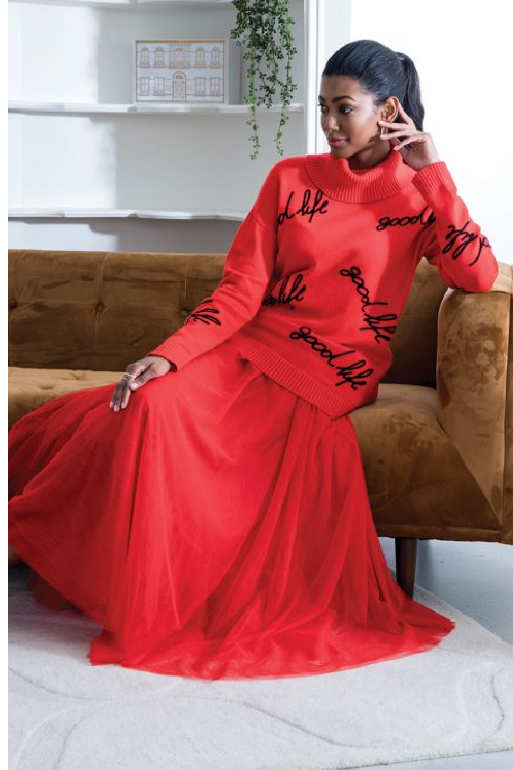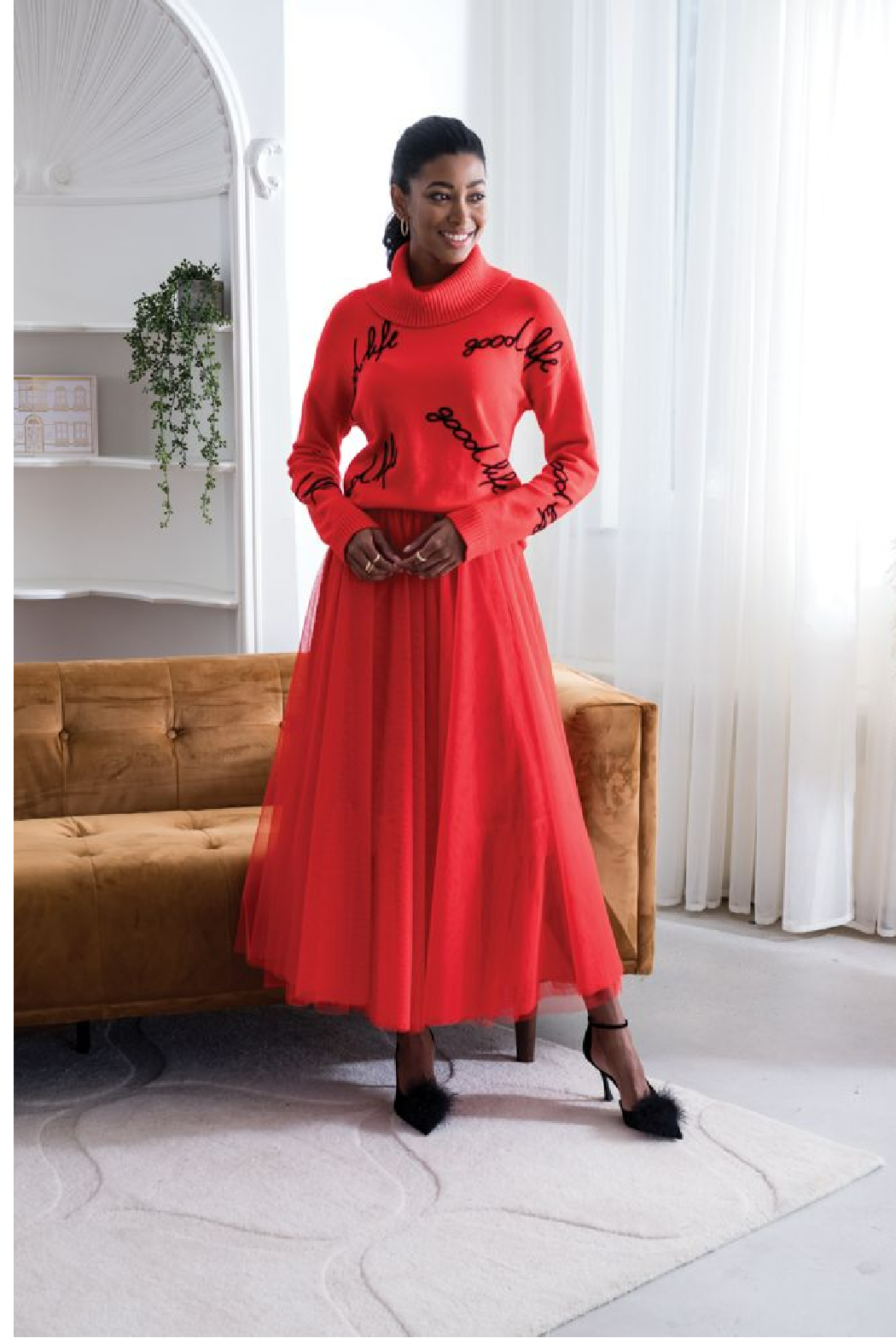 Lightweight “Believe” Knit Poncho – Cozy Black Holiday Layer