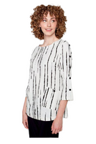Upgrade your wardrobe with this stylish and versatile top, perfect for any occasion. Crafted from high-quality, lightweight fabric, this top features a modern black stripe pattern on a crisp white background, making it an eye-catching addition to your collection. Key Features: - *Unique Design:* The top is adorned with vertical black stripes, offering a sleek and contemporary look. - *Comfortable Fit:* Made from soft, lightweight fabric, this top ensures all-day comfort, whether you're at work, running errands, or out with friends. - *3/4 Length Sleeves:* The sleeves are designed to be practical yet chic, featuring button accents that add an extra touch of detail. - *Versatile Style:* Pairs effortlessly with jeans, trousers, or skirts, making it a versatile piece for any season. - *Easy Care:* The fabric is easy to care for, making it a convenient addition to your everyday wardrobe. Functional and fashionable, this top promises to elevate your style effortlessly while ensuring you stay comfortable throughout the day. Perfect for those who appreciate both style and ease, this is a must-have piece for your closet. Order now and embrace a blend of comfort and chic styl