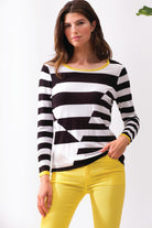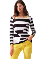 New Alison Sheri Black and White Striped Sweater with Yellow Trim...Looks Perfect with Our Sunshine Yellow Capri Jean!
