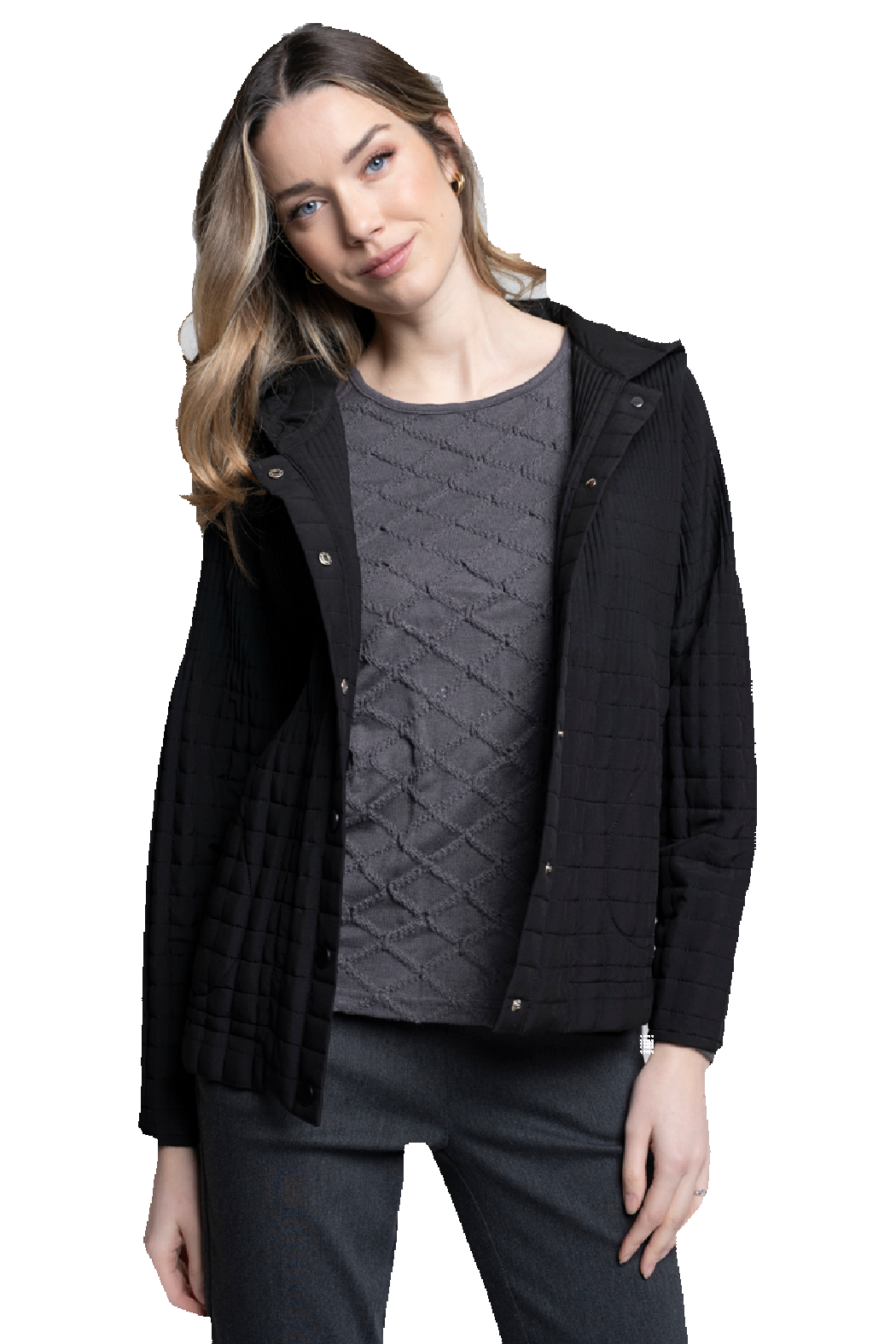 Lightweight throw but also perfect for layering under coats? Don’t miss this Pleated Hooded Jacket, available in two colors and crafted from pleated fabric with button-front closure and a little hood to keep you extra warm.