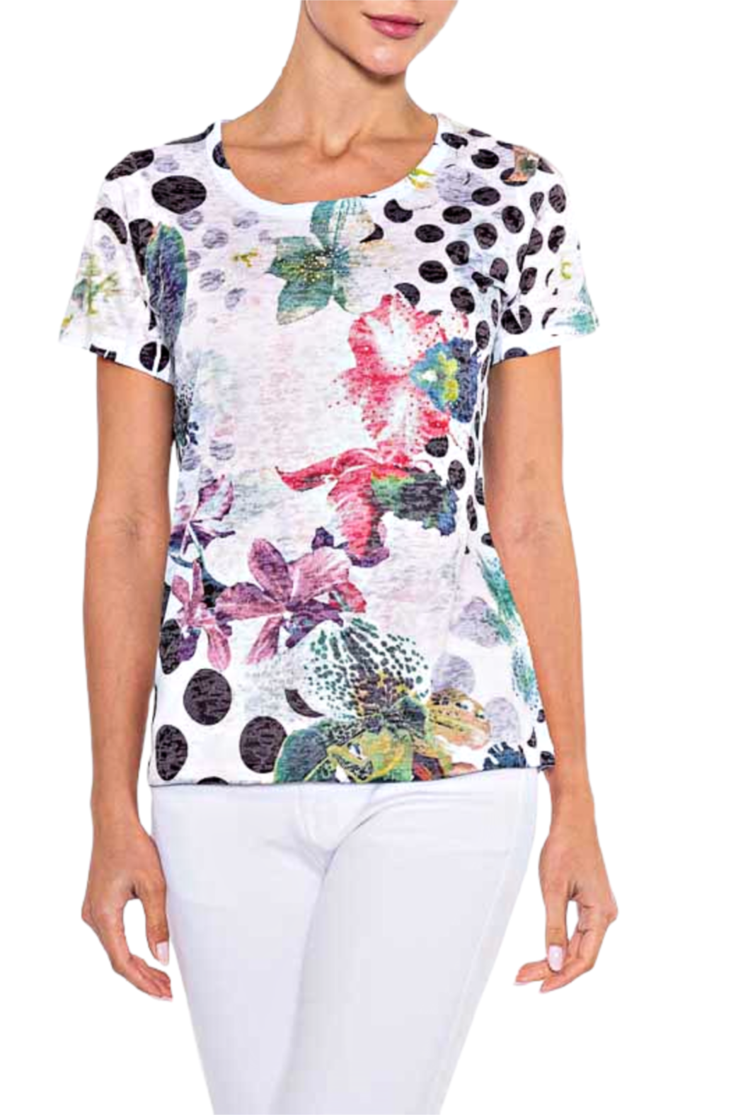 Dot and Floral Tee with a Touch of Bling, Super Light Weight