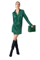 Elevate Your Style with the Emerald Satin Shirtdress** Step into sophistication with our Emerald Satin Shirtdress, designed to blend timeless elegance with modern flair. This stunning dress showcases a luxurious satin fabric that drapes beautifully over your figure, offering both comfort and glamour for any occasion. The rich emerald, green hue adds a touch of opulence, making it a standout piece in your wardrobe. *Key Features: * - *Premium Satin Fabric: * Crafted from high-quality satin, this dress provides a smooth, silky texture that glides effortlessly against the skin. - *Tailored Fit: * The shirtdress features a flattering silhouette with a tailored waist and gentle rouching, enhancing your natural curves. - *Button-Down Front: * A full-length button-down closure adds a classic touch while allowing for customizable styling options. - *Versatile Design: * Perfect for both daytime events and evening soirées, this versatile piece transitions seamlessly from work to dinner dates. - *Long Sleeves: * The long sleeves offer added warmth and sophistication, making it ideal for cooler weather. - *Elegant Collar: * The sharp collar design elevates the overall look, adding a polished finish. *Benefits: * - *Effortless Elegance: * Combines classic and contemporary elements for a look that's both sophisticated and modern. - *Comfortable Wear: * The silky satin material ensures maximum comfort, making it easy to wear all day long. - *Versatile Styling: * Pair with heels for a chic evening look or with boots for a stylish daytime ensemble. *Functionality: * - *Adjustable Fit: * Button-down front allows for easy adjustments and versatile styling. - *All-Season Wear: * Suitable for various occasions and weather conditions, thanks to its long sleeves and versatile design. *Design Highlights: * - *Rich Evergreen Tone: * A lush, vibrant green that adds a pop of color to any outfit. - *Stylish Accessories Option: * Complements beautifully with gold or silver jewelry and a variety of bags and shoes. Embrace elegance and charm with the Emerald Satin Shirtdress—an indispensable addition to your fashion repertoire.