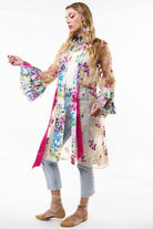 Elevate your wardrobe with this exquisite floral embroidered sheer kimono, a stunning statement piece designed to add a touch of whimsy and elegance to any ensemble. Crafted from high-quality, lightweight sheer fabric, this overlay features intricate floral embroidery and bead embellishments that showcase meticulous attention to detail. The vibrant floral print along the open front and flared sleeves brings a burst of color, perfect for brightening up your look. Key Features: - *Material*: Lightweight, sheer fabric for an airy, ethereal feel. - *Design*: Intricate floral embroidery with delicate bead embellishments. - *Details*: Vibrant floral print along the open front and flared sleeves. - *Fit*: Relaxed fit that drapes beautifully over your silhouette. - *Versatility*: Ideal for layering over casual outfits, dresses, or evening wear. Benefits: - *Stylish*: Instantly enhances the visual appeal of any outfit. - *Comfortable*: Lightweight, breathable fabric ensures comfort throughout the day. - *Unique*: Stand out with this unique, artful design that’s sure to turn heads. Functionality: - *Layering Piece*: Perfect for adding a sophisticated layer to your attire. - *Seasonal*: Versatile enough for spring and summer, adding elegance without extra warmth. Design: - *Floral Embroidery*: Adds a touch of nature-inspired beauty and romance. - *Open Front*: Easy to wear over various outfits, allowing for versatile styling. - *Flared Sleeves*: Provide a dramatic, fashionable flair. This floral embroidered sheer overlay is an exquisite piece that embodies both artistry and sophistication, making it a must-have for fashion enthusiasts seeking to express their individuality and elegance.