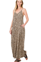 BRUSHED DTY MICROFIBER LEOPARD V-NECK CAMI MAXI DRESS WITH SIDE POCKETS - ADJUSTABLE STRAPS TOTAL BODY LENGTH (HIGH POINT BUST): 48.5", BUST: 34" approx. - MEASURED FROM SMALL * COLOR MAY VARY SLIGHTLY DUE TO MONITOR RESOLUTION