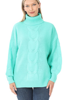 Zenana TURTLENECK CABLE KNIT BALLOON SLEEVE SWEATER -MIDWEIGHT SWEATER TOTAL BODY LENGTH: 26", CHEST: 50" approx. -MEASURED FROM SMALL * COLOR MAY VARY SLIGHTLY DUE TO MONITOR RESOLUTION