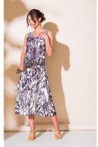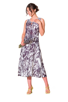 The dress is cut in an A-line silhouette that gracefully flares from the waistline, offering breathable wear and flattering for various body types. It's crafted with a soft, flowy fabric that ensures ease of movement, making it ideal for day-to-day activities or special occasions. This dress is Fully Lined