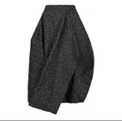 Keywords: Noen skirt, balloon skirt, black skirt with dots, half elastic waist skirt, avant-garde fashion, asymmetrical skirt, chic women’s skirts, comfortable waistband, designer skirts for women, sophisticated casual wear, modern fashion essentials, statement skirts.