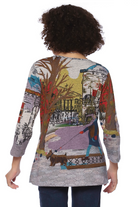 Introducing Our Odessa French Terry Tunic Top, Designed with a Eye Catching City Scene. This Colorful Top Features a V-Neckline and 3/4 Sleeves and is Designed in a French Terry, The Perfect Combo for Comfort. The City Scene Design is Printed on Both Front and Back and Features a Girl Walking Her Dog, Adding a Playful and Charming Touch to This Already Unique Piece. Enhance Your Wardrobe with this Stylish French Terry Tunic Top Featuring a Girl Walking Her Dog. Shop Us Online and Up Your Wardrobe!