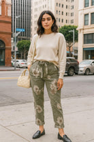 Keywords: olive floral pants, women's jogger pants, tie-waist pants, casual floral pants, urban style pants, lightweight floral joggers, trendy cuffed pants, women's boutique fashion, Boutique in Naples, Naples Boutique, Boutique in Naples Florida, Naples Florida Boutique