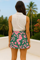 Pink and Green Floral Print Skort – Fun Resort Style with Pockets