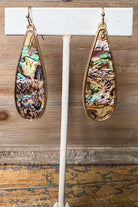 Gold fishhook skinny teardrop earrings with mixed stone design